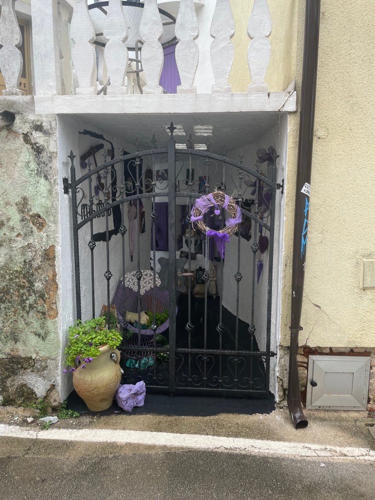 It’s amazing how the new and the old sit together , with brand new cars parked under ancient sundials. Decrepit old houses with satellite dishes, all mixed in with some houses renovated or waiting to be renovated. There was even a Lavender inspired hose.