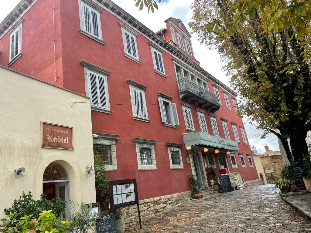 The town of Groznjan has a deep history associated with artists and of course the truffle. Other than the supermarket it was truffle shops and galleries. It was also a town serviced by the now defunct Parenzana railway and had 3 miniature trains taking pride of place in the square. The Parenzana railway was destroyed by Mussolini so he had steel for weapons manufacture. We actually walked on parts of it today and scheduled to do similarly tomorrow.