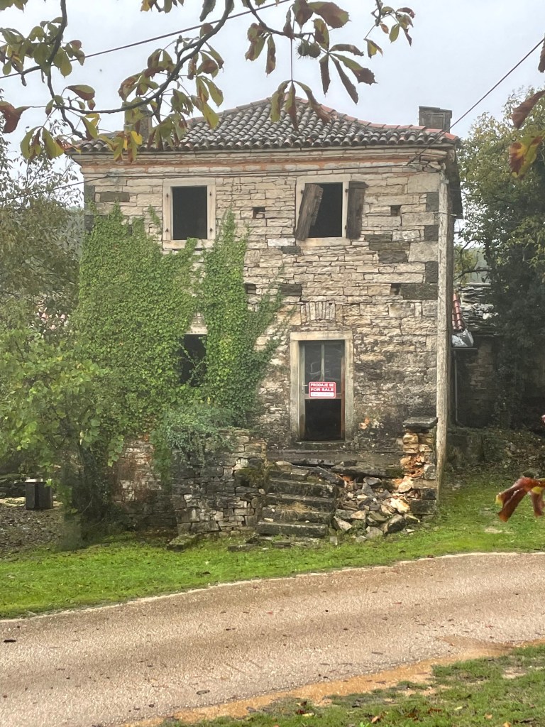 The town of Groznjan has a deep history associated with artists and of course the truffle. Other than the supermarket it was truffle shops and galleries. It was also a town serviced by the now defunct Parenzana railway and had 3 miniature trains taking pride of place in the square. The Parenzana railway was destroyed by Mussolini so he had steel for weapons manufacture. We actually walked on parts of it today and scheduled to do similarly tomorrow.