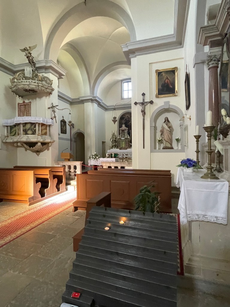 Arrived just as Mass for most of the 25 population finished and entered the town through two ornate brass doors. Popped into the church, which was as pretty as any visited in country Croatia. Lit a candle for two wonderful young people who are battling health issues and hoped the Big Fellow might lend a hand in their recovery.
