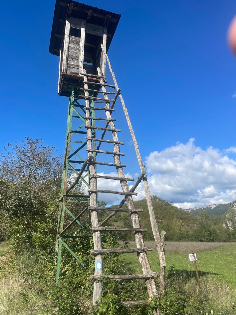 The only two noises were baying hounds and pops in the distant hills – probably hunting- and water rushing down the river. Whilst no obvious hunting nearby we did come across a stand with a very rickety ladder which hopefully the hunters scaled with rifles uncocked.