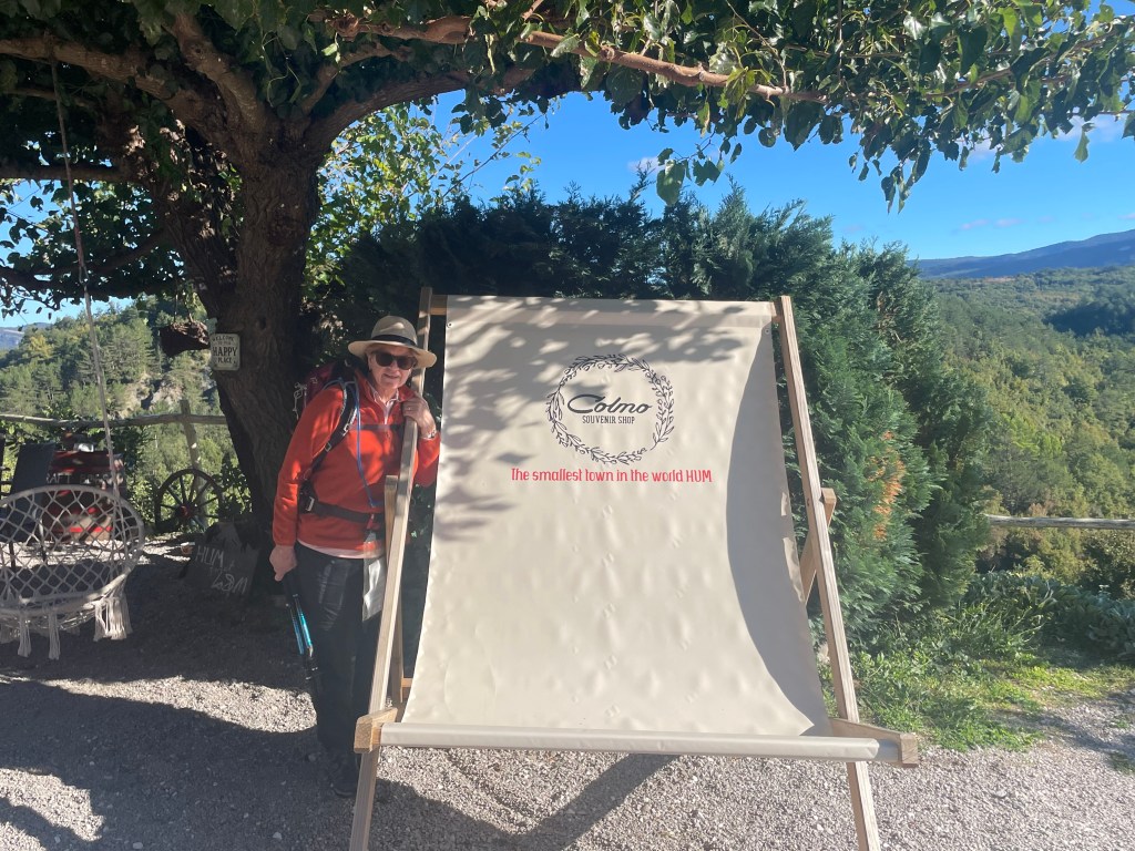 It was a perfect day to be different so we decided to do our walk in reverse which meant a 20km drive into the hills to start at the worlds smallest walled town Hum- small by size small by letters.
