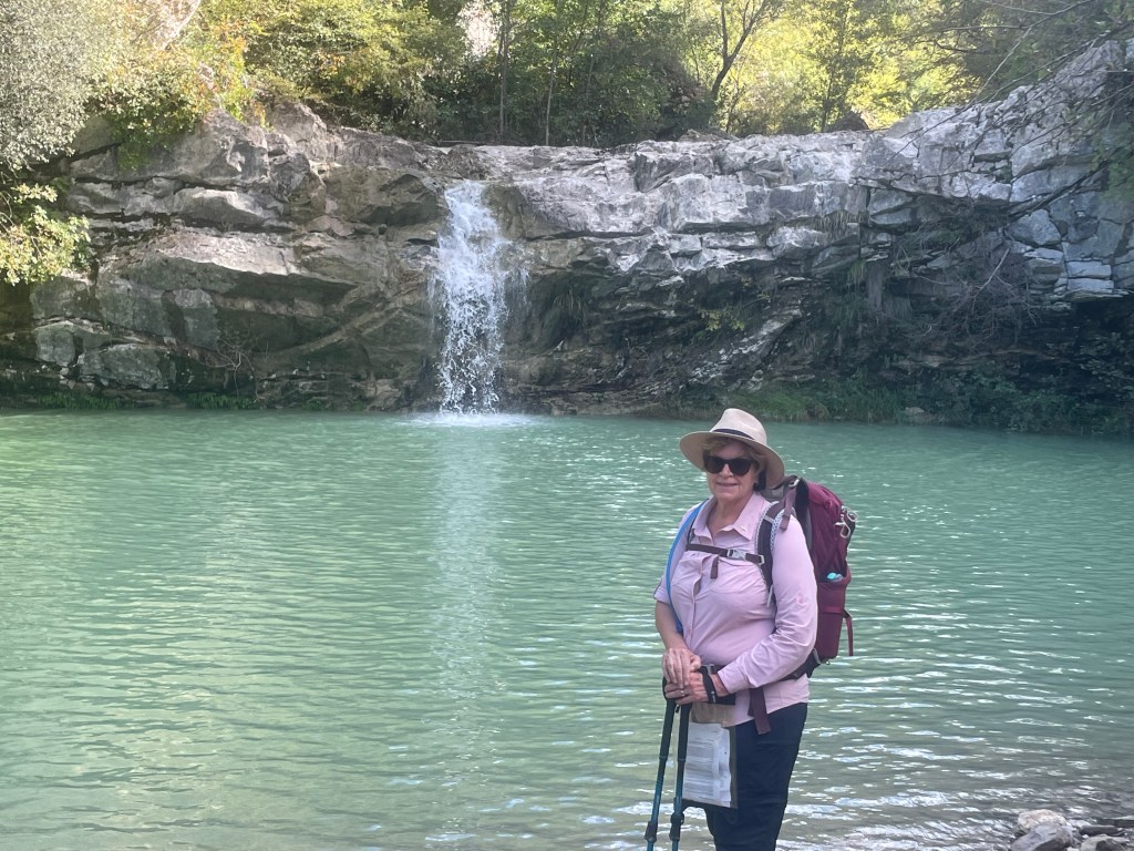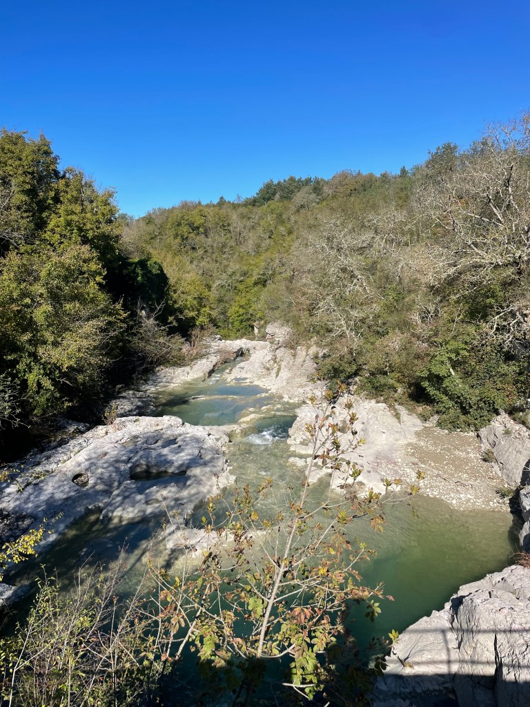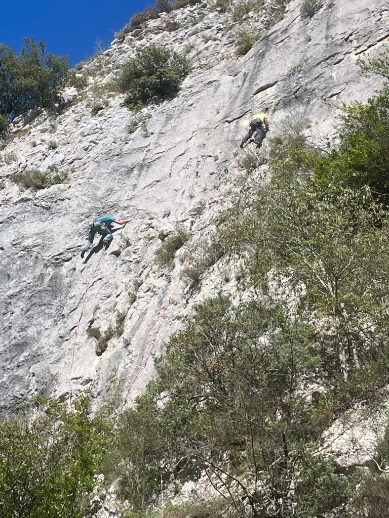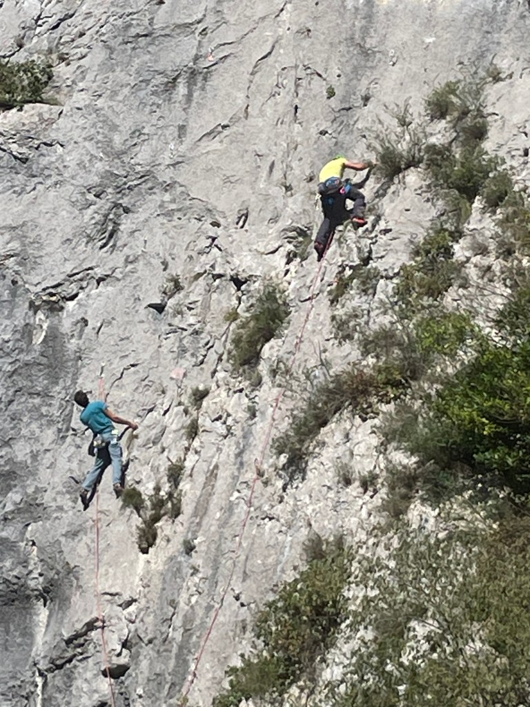 The track levelled out and dropped to the floor of the gorge where both sides had climbers scaling or getting prepared to scale cliffs of varying difficulty. There were guys up about 200 meters just hanging there making no progress. They were dangling like the proverbial Xmas decoration, which bought a smile to the decoration Queen.