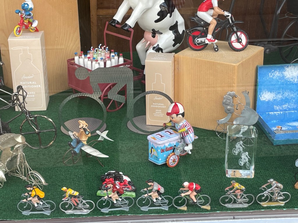 There was also a wooden sculpture and a bike reproduction that caught the eye.