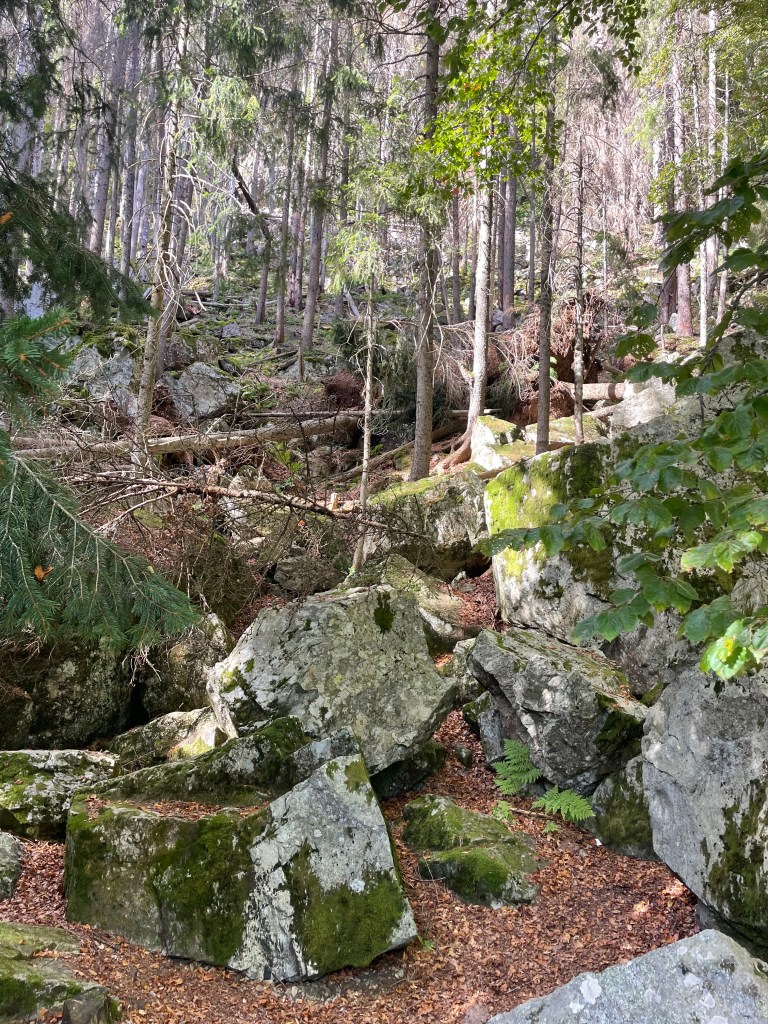 The path tumbled along for ages with huge trees to one side and the railway high on the other side sloping down towards the bottom of the ravine, on a track noted as one of the steepest in Germany. If you looked hard enough you could see the tunnels amongst the trees.