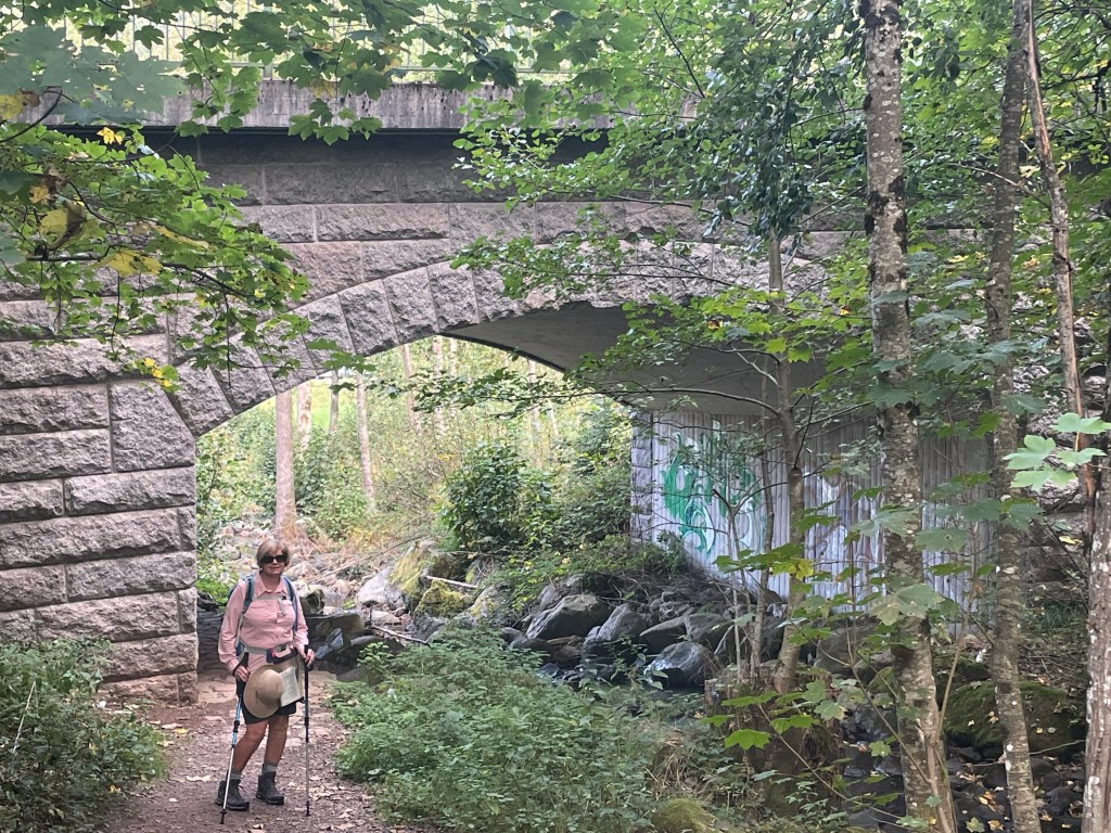 The track continued to follow the creek and several unused bridges and tunnels spanned the creek. Getting a picture was a balancing act, achieved with success but not much grace.