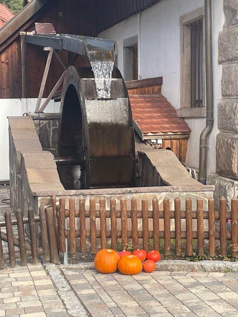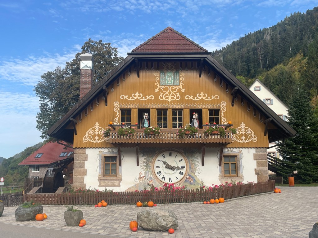 We were soon at the bottom of the ravine and in a little fairy land with a house sized Cuckoo Clock and a lot of modern buildings to satisfy the tourists, particularly the 100 or so Yanks off a Rhine River cruise. There were pumpkins aplenty in an early nod to Halloween.
