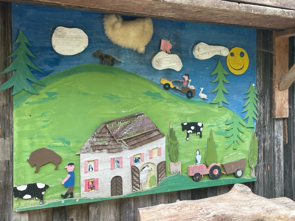 As the track flattened out we walked through some small hamlets with tiny cow holdings, cute firewood stacks and a fence which answered that old conundrum of ‘where do odd socks end up?” This farmer had a fenceful, along with a great shingle for his landscaping business.