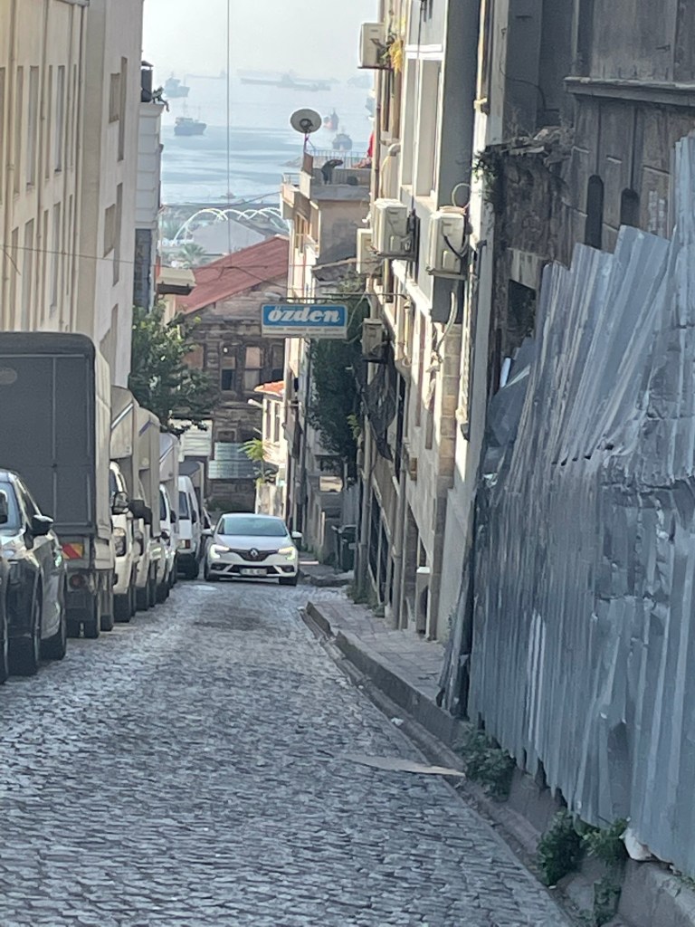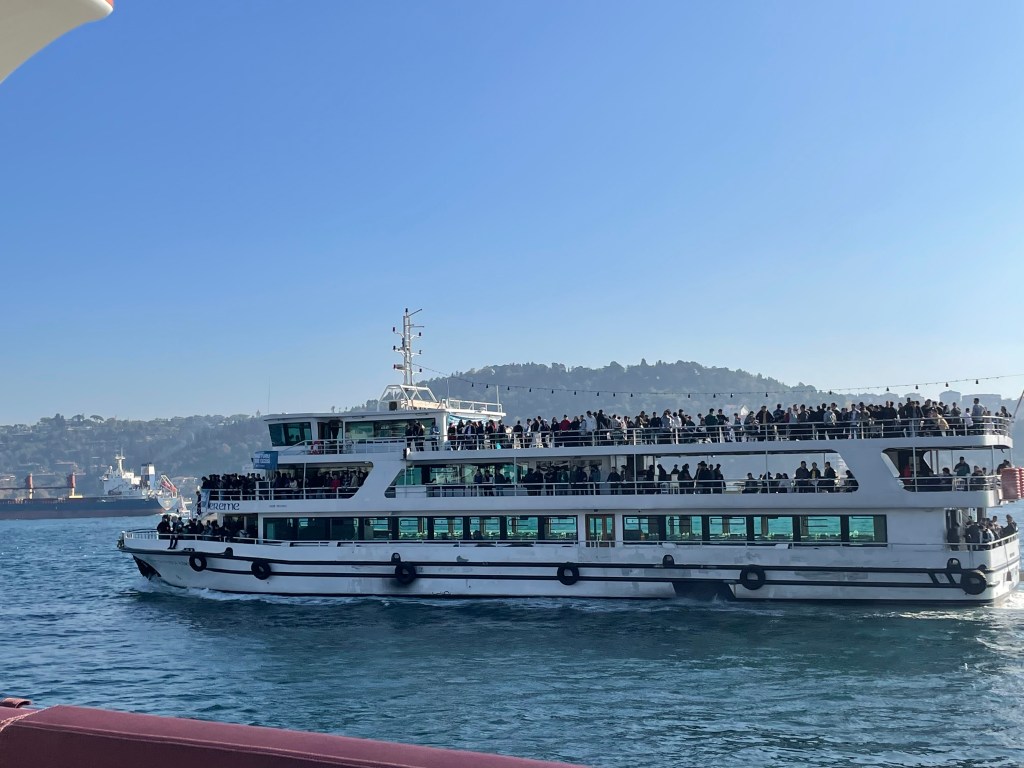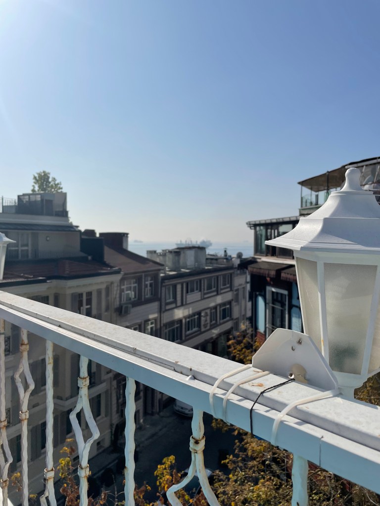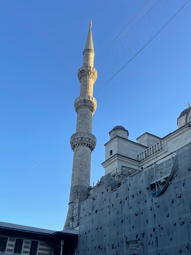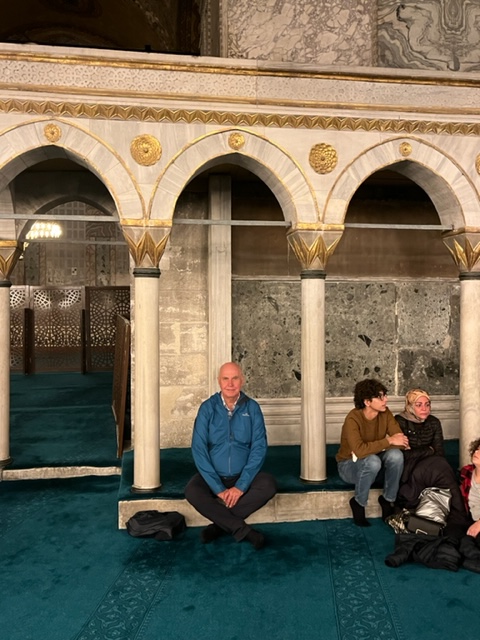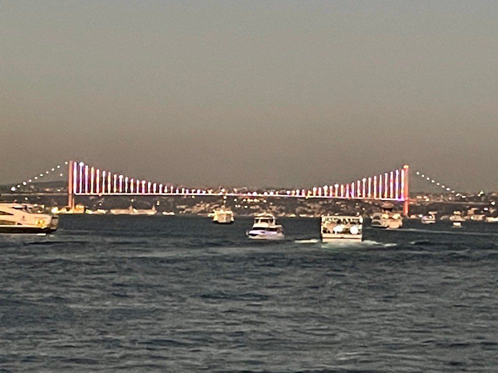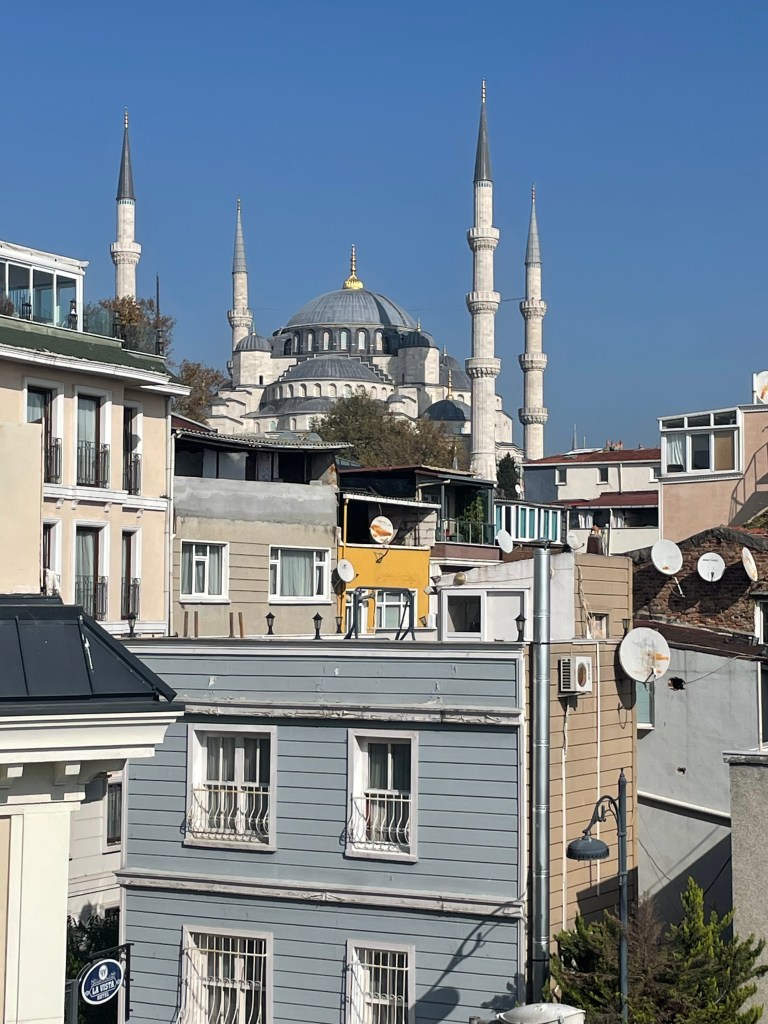 Celebrated with coffee and cake and with time and money running out our last visit was to the rooftop garden restaurant near our hotel for a lunch snack. it was not until we got up there that we realised we were almost in the backyard of the Blue Mosque and also had a filtered harbour view in several directions.