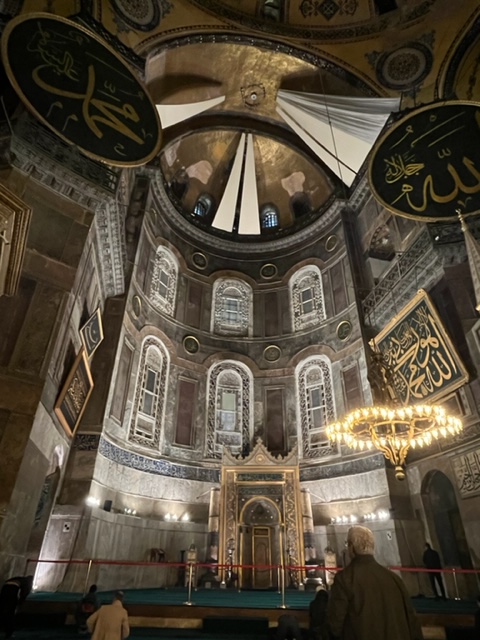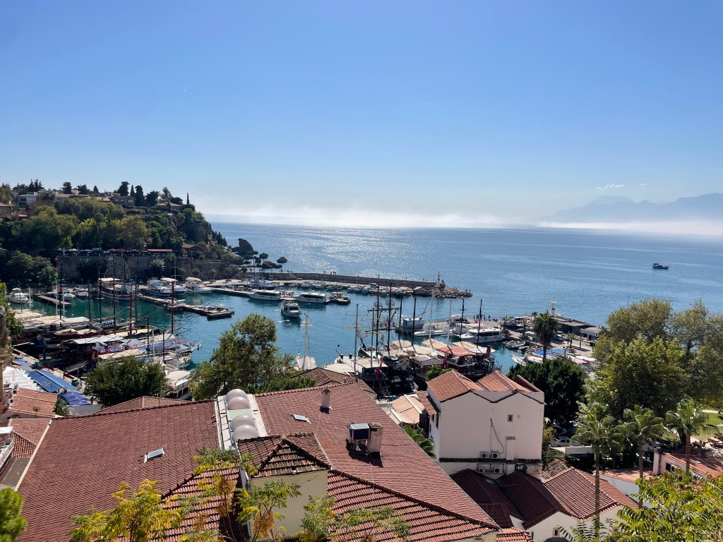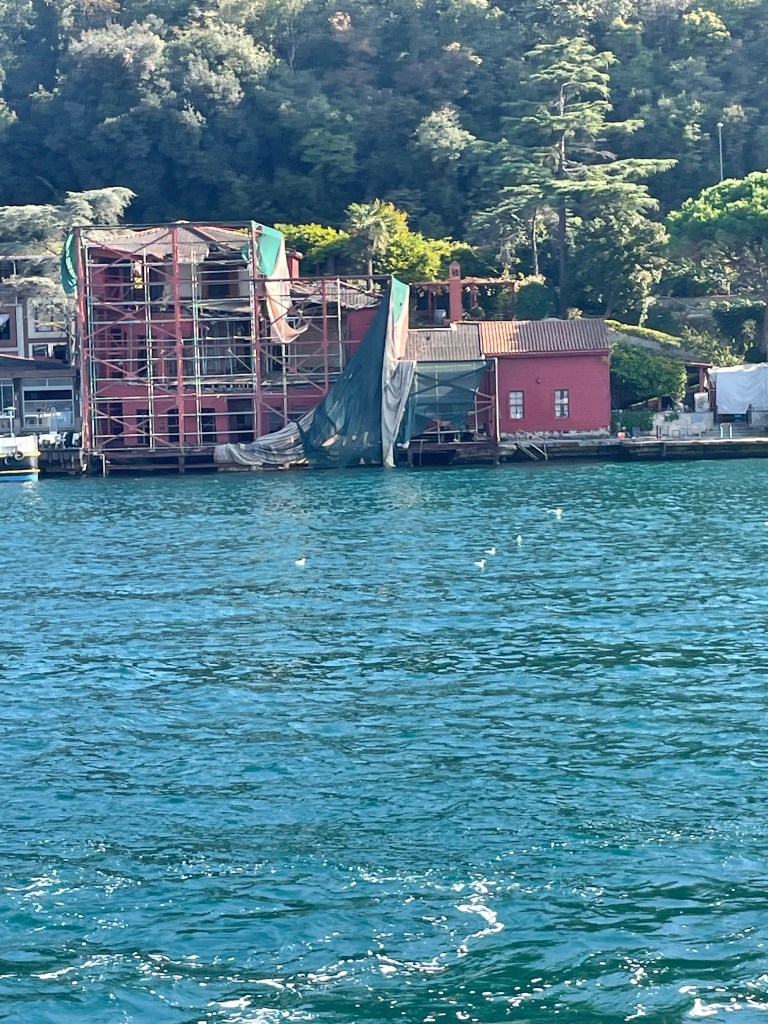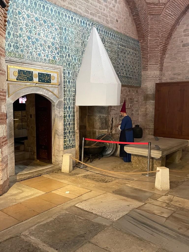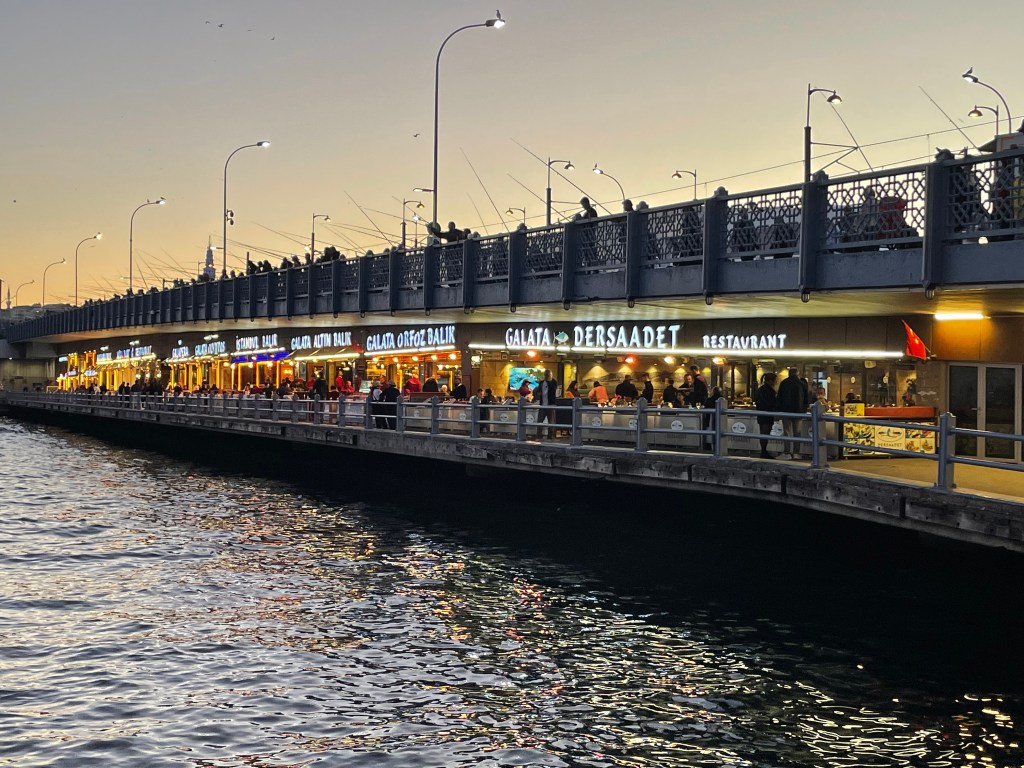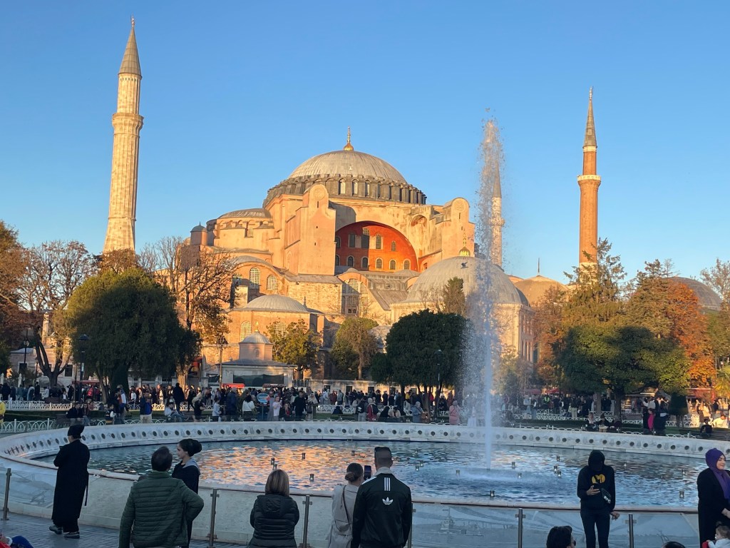 Celebrated with coffee and cake and with time and money running out our last visit was to the rooftop garden restaurant near our hotel for a lunch snack. it was not until we got up there that we realised we were almost in the backyard of the Blue Mosque and also had a filtered harbour view in several directions.