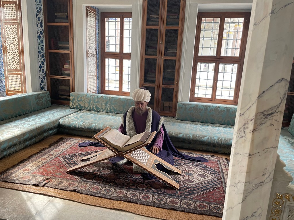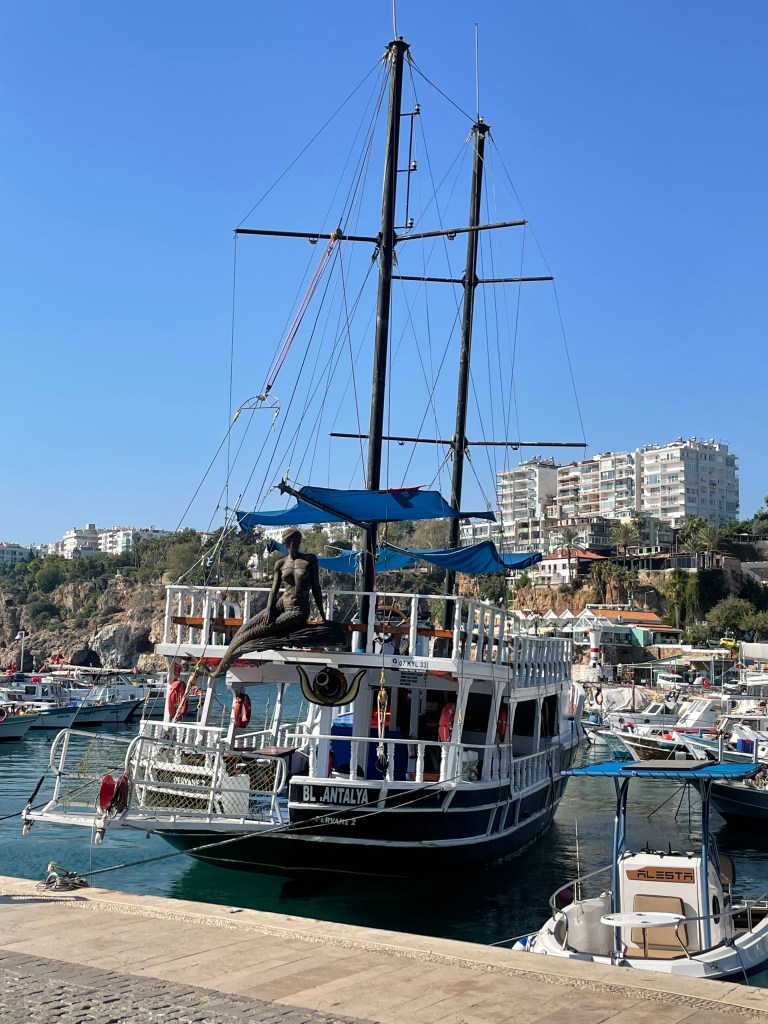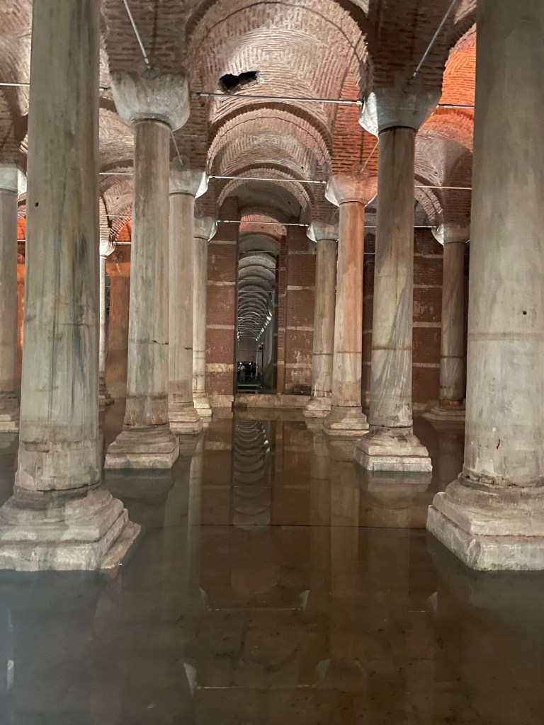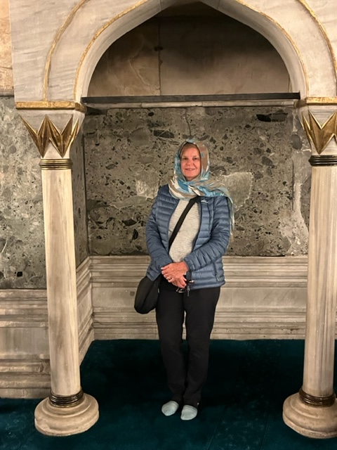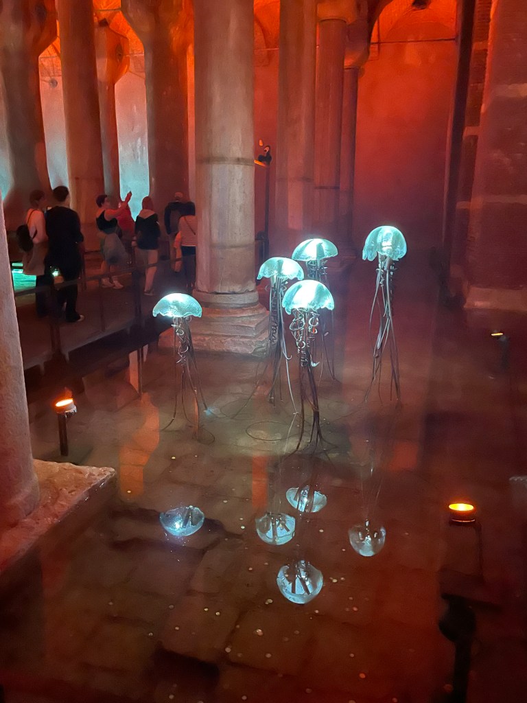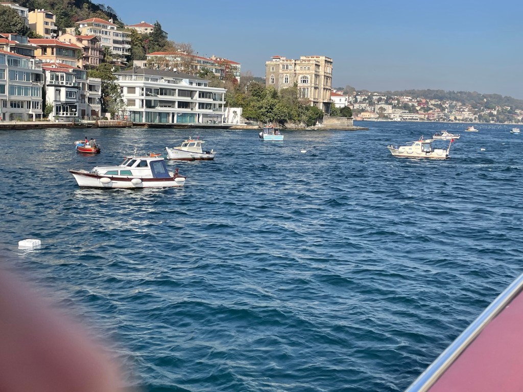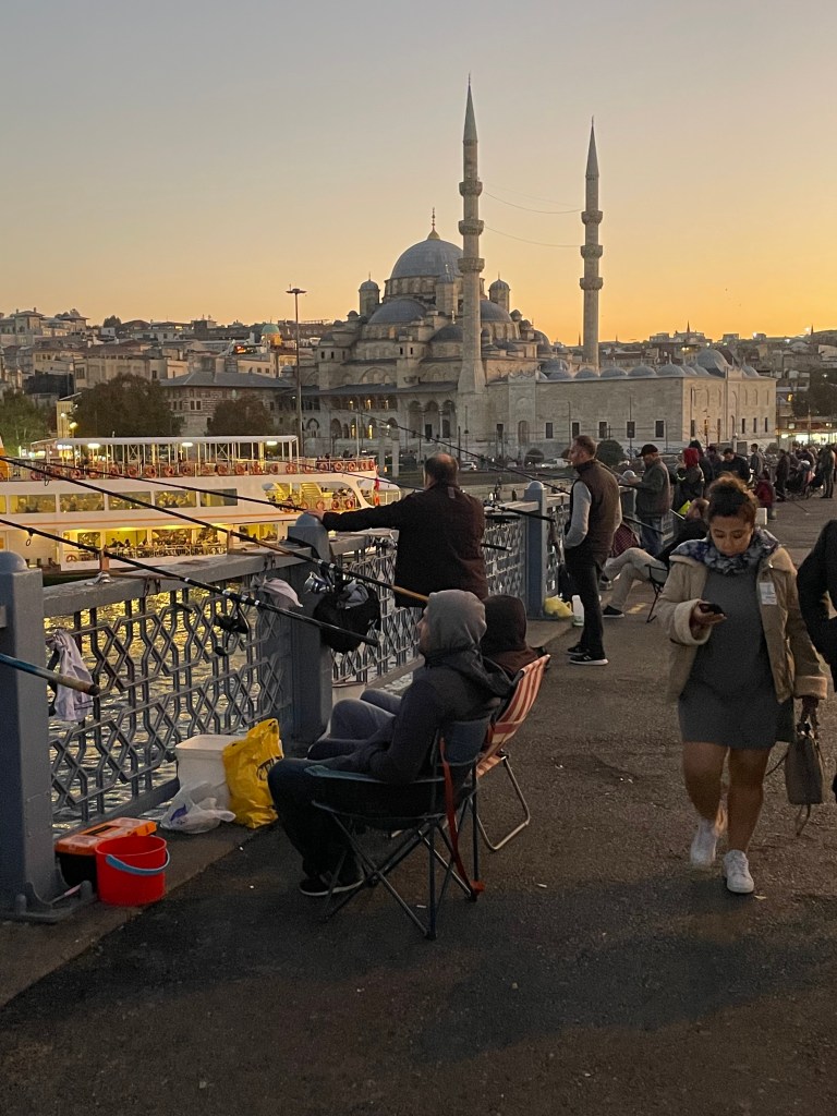 Celebrated with coffee and cake and with time and money running out our last visit was to the rooftop garden restaurant near our hotel for a lunch snack. it was not until we got up there that we realised we were almost in the backyard of the Blue Mosque and also had a filtered harbour view in several directions.
