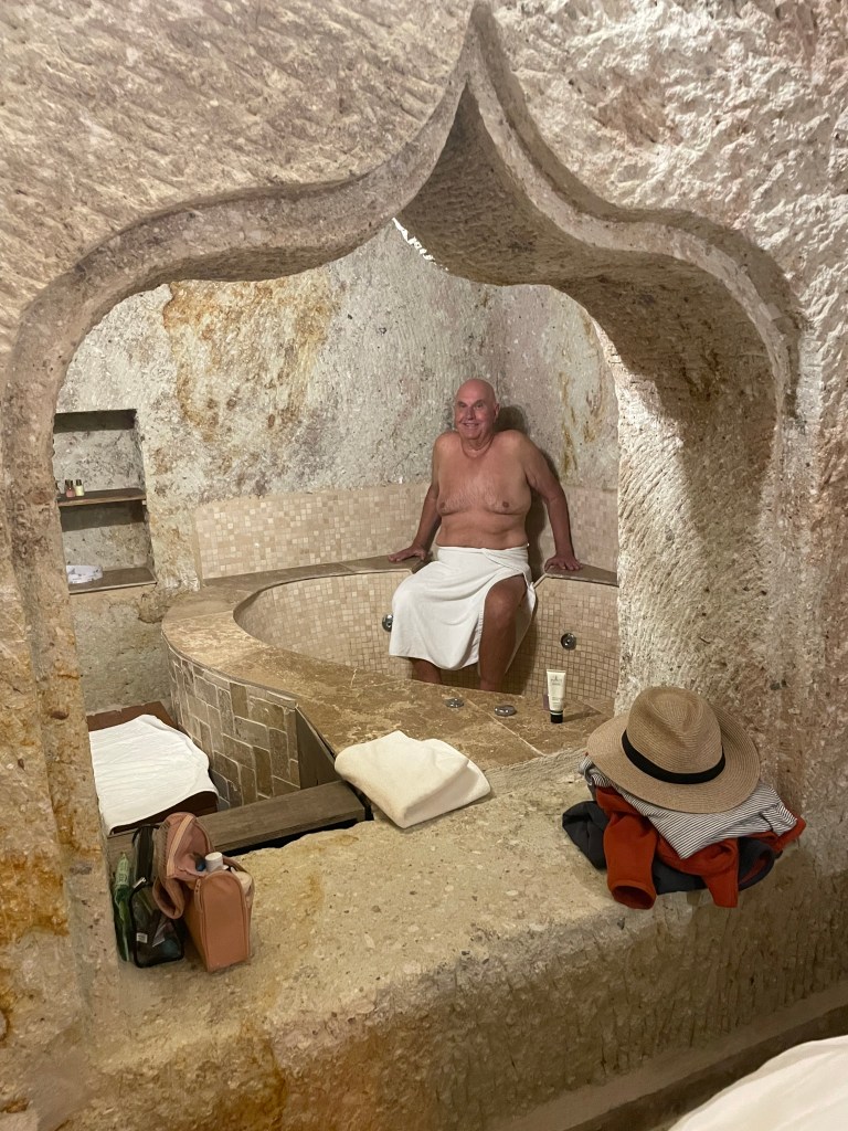 We both went to the Turkish bath and other than the dangly bits I think I had three people give me a going over from head to toe and that omits the barber.