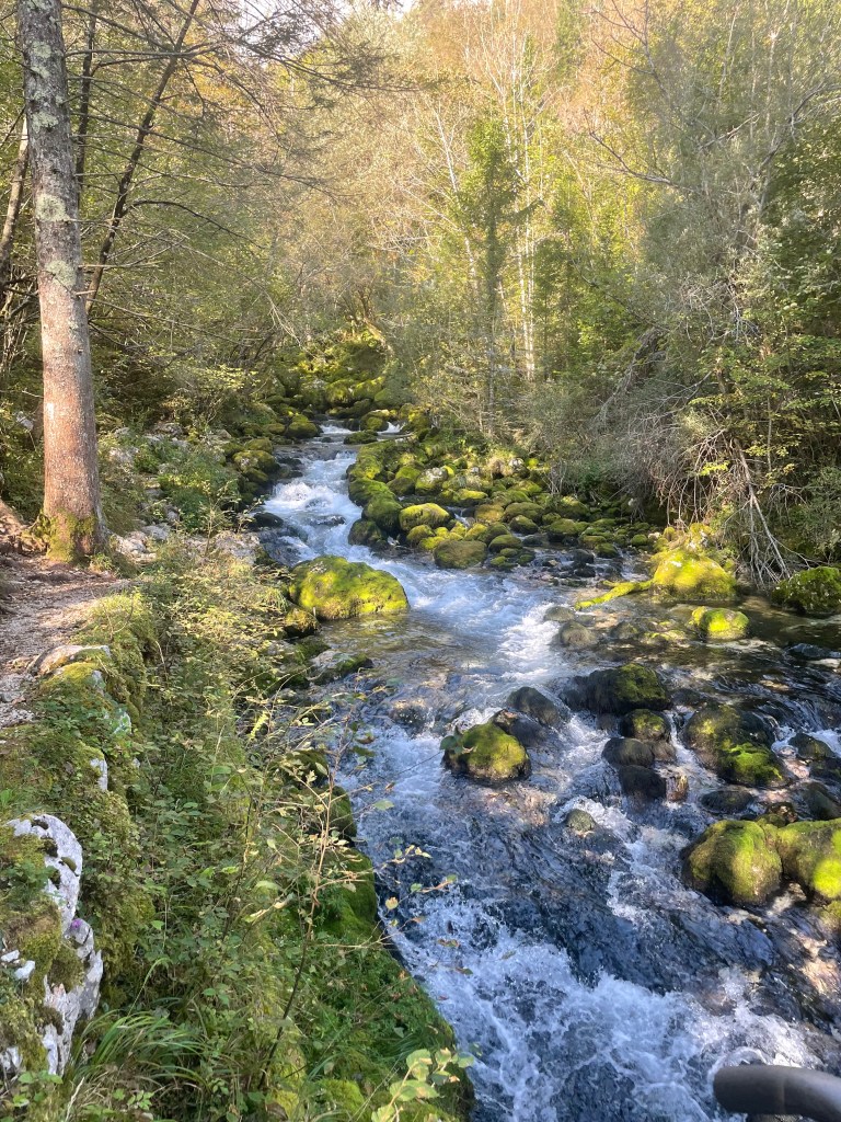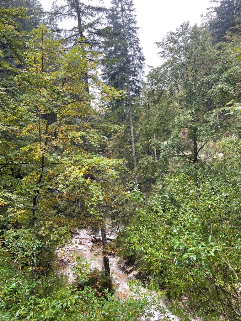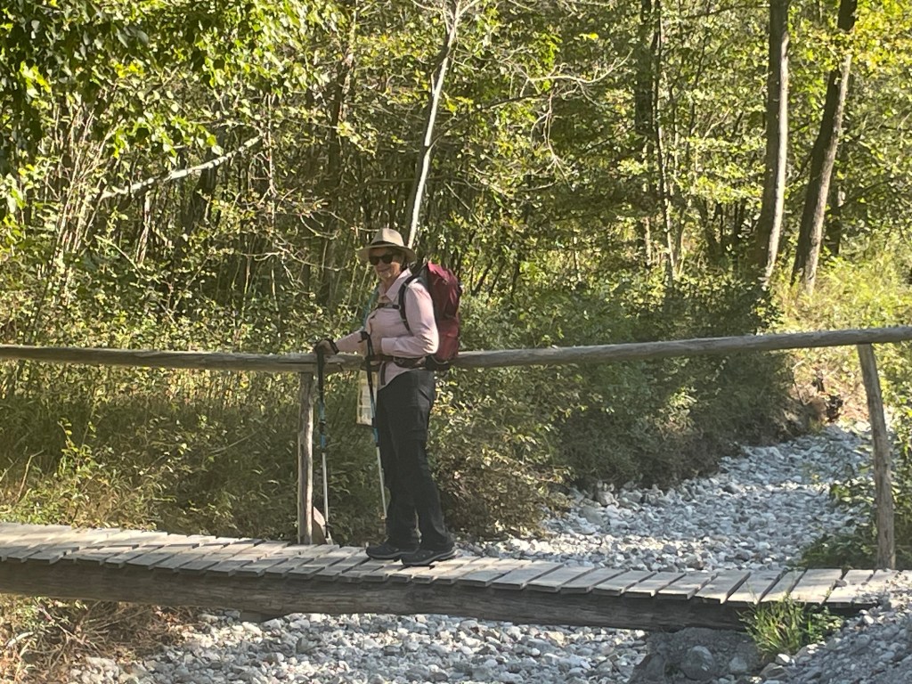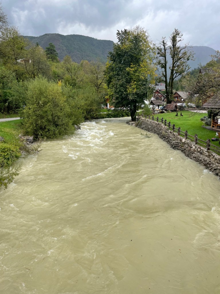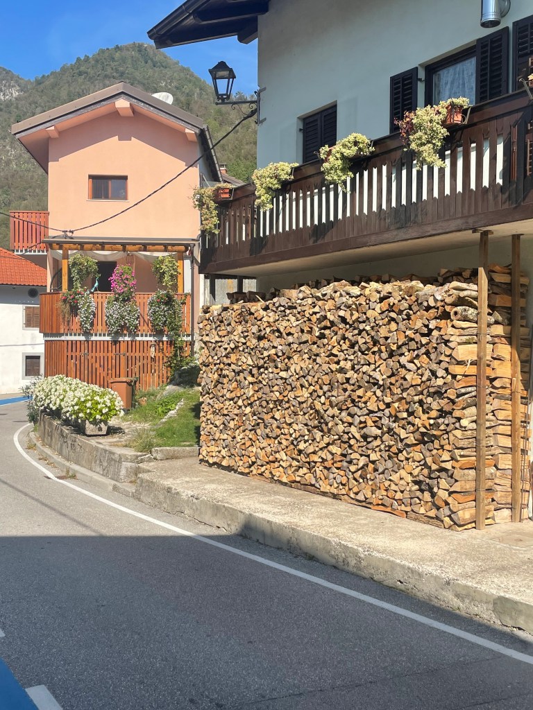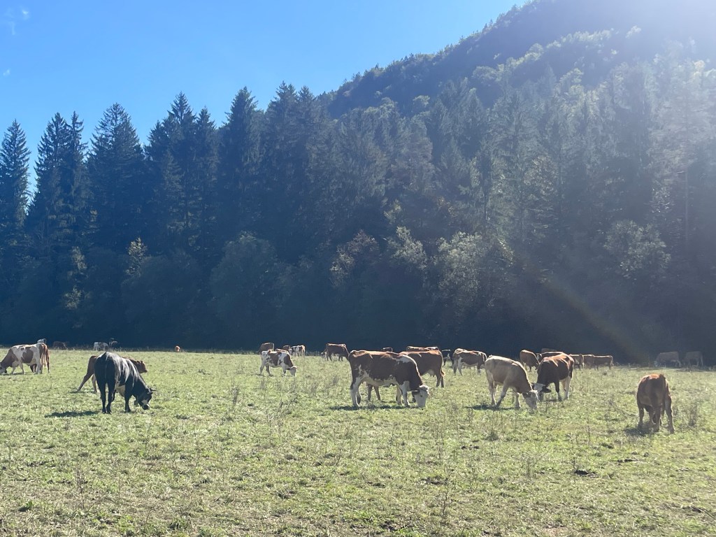 Followed the still fast flowing river through mountain valleys now tending to cropping , mainly corn, on rich soil. Looking at weather forecast that fast flow is likely for a while with 100mm plus forecast over next few days.