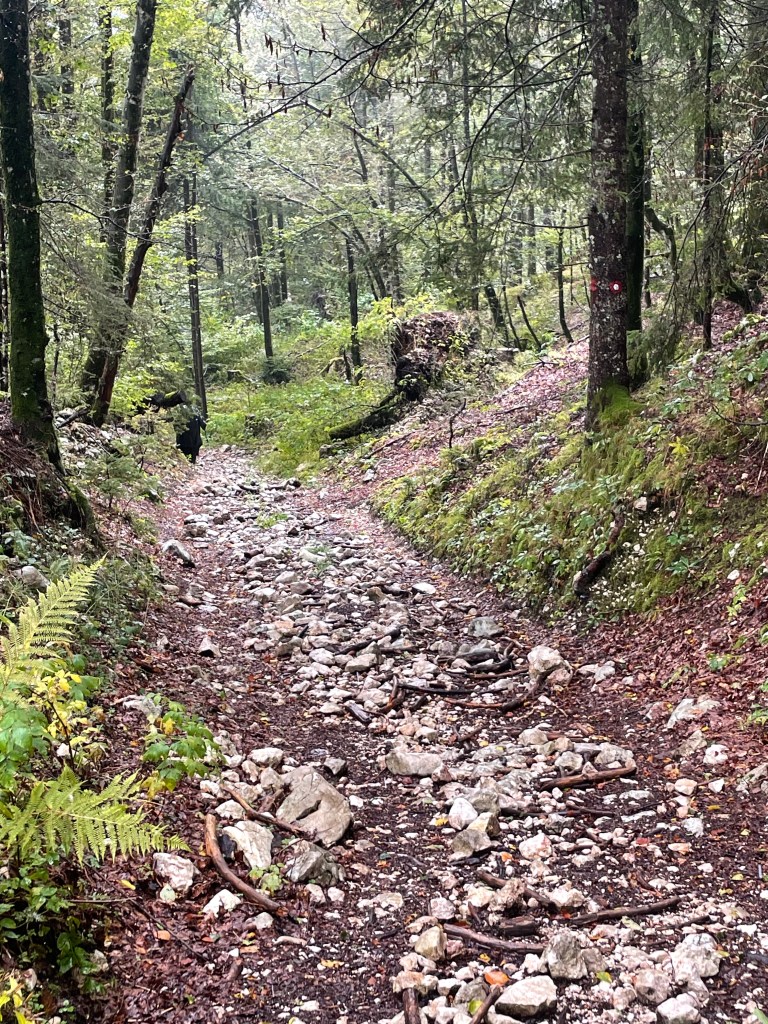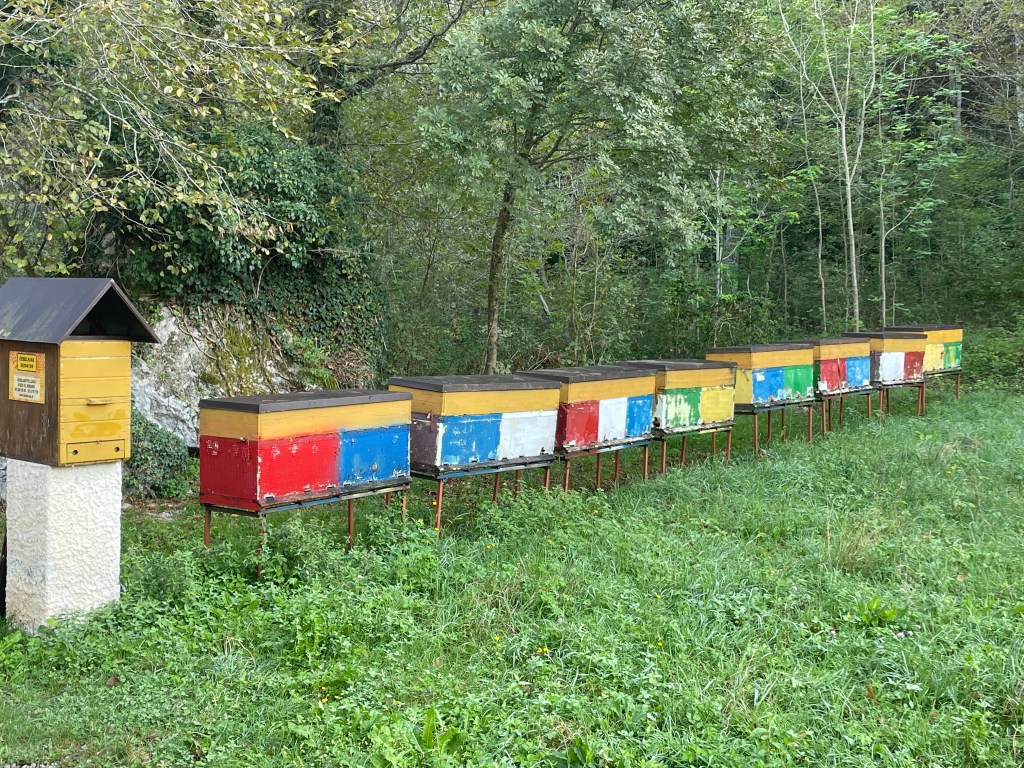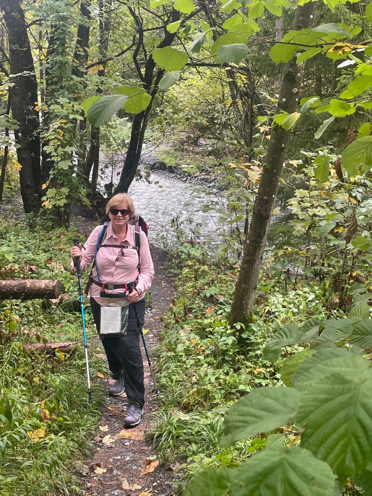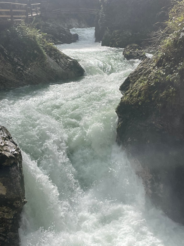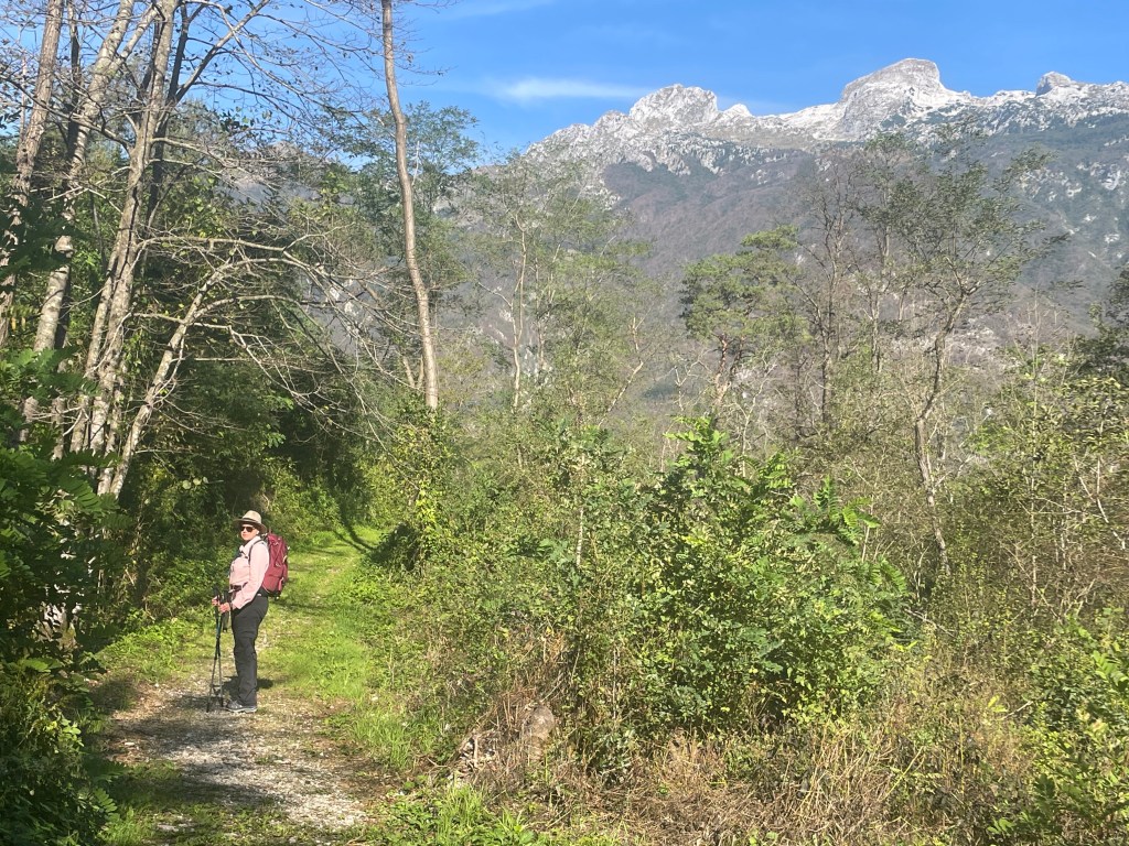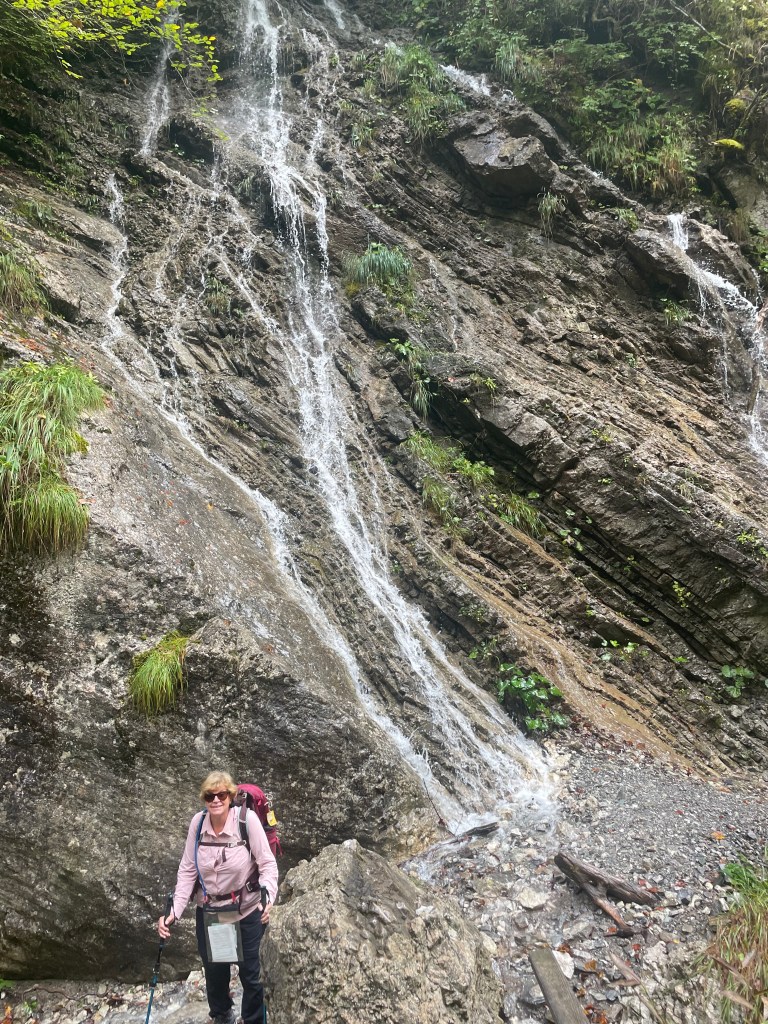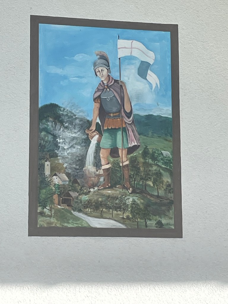 Followed the still fast flowing river through mountain valleys now tending to cropping , mainly corn, on rich soil. Looking at weather forecast that fast flow is likely for a while with 100mm plus forecast over next few days.