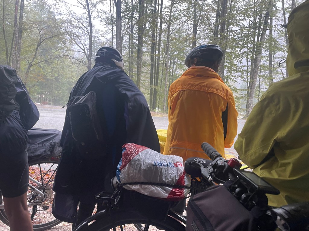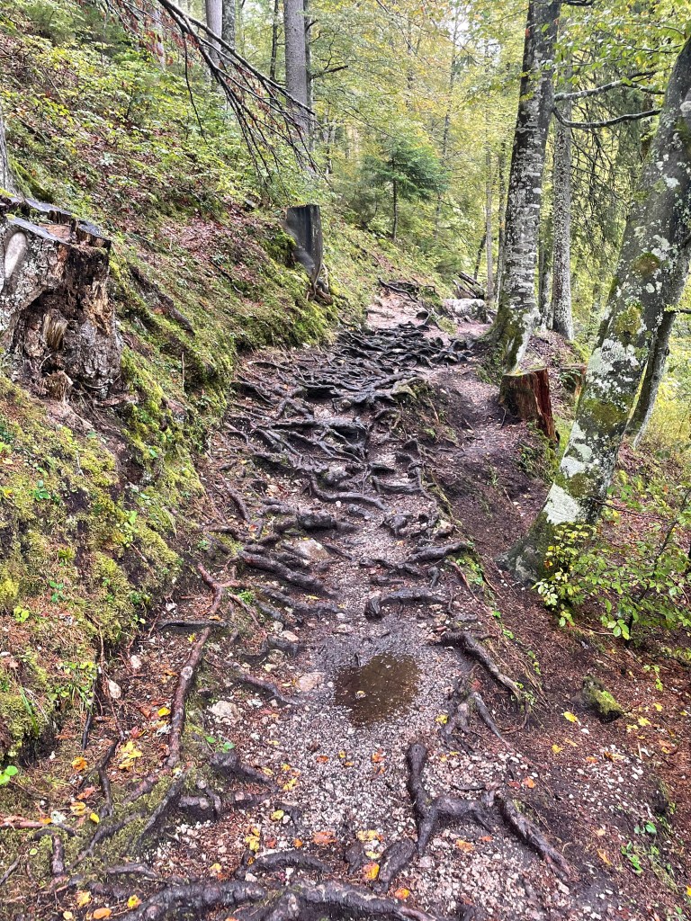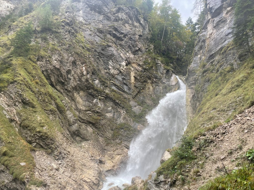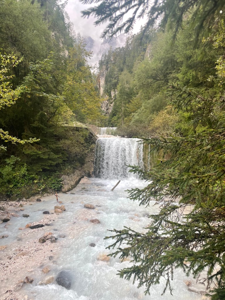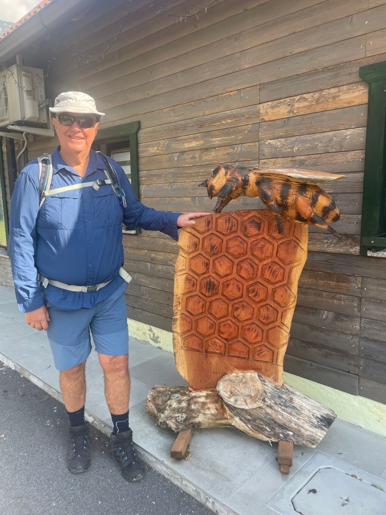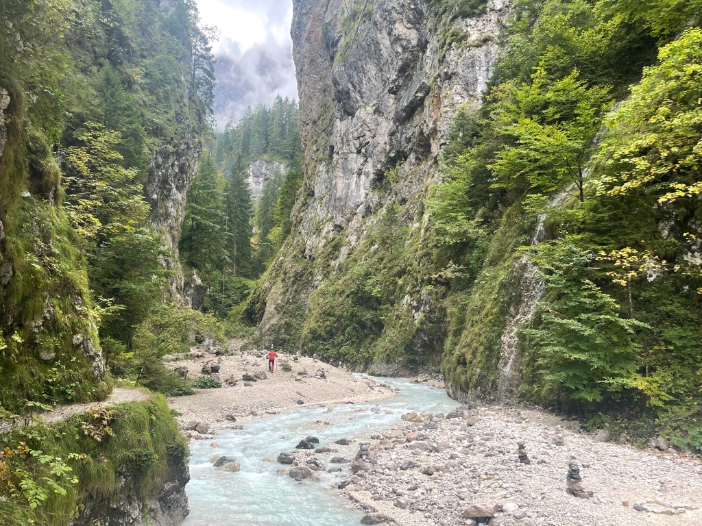Followed the still fast flowing river through mountain valleys now tending to cropping , mainly corn, on rich soil. Looking at weather forecast that fast flow is likely for a while with 100mm plus forecast over next few days.