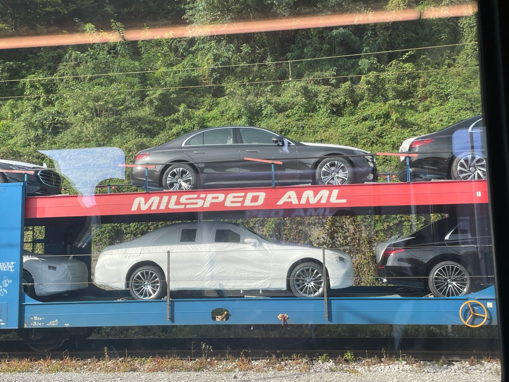The new car industry is booming over here. A train was parked at a station with at least 100 brand new Mercedes and VW’s on board, some covered in protective suits like an injured Black Caviar.