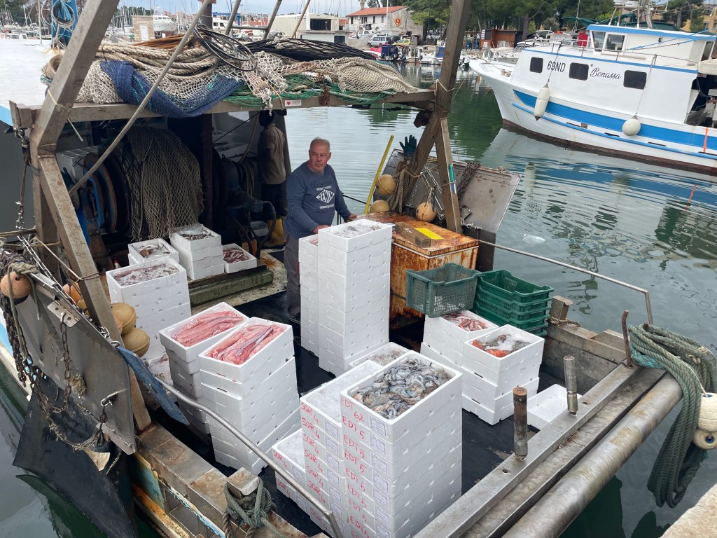 After a lap of the beaches, we walked the harbour where fishing boats were boxing up their catches ready for collection by restaurants. The variation of the trawler catches was amazing. The local cat fraternity either smelt or saw them coming and were waiting hungrily in the park opposite for some offcuts.